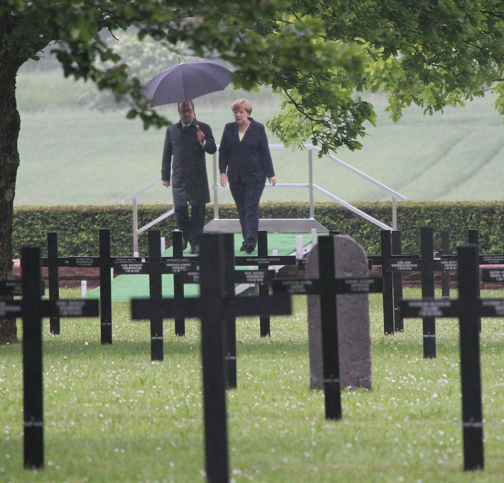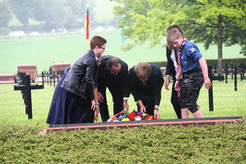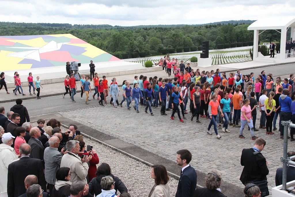 Am 29. Mai 2016 haben Frankreich und Deutschland gemeinsam des hundersten Jahrestages der Schlacht von Verdun gedacht. 300 Tage kämpften die französischen und deutschen Soldaten unter entsetzlichen Verlusten gegeneinander. Aber Verdun ist auch ein Symbol für die Versöhnung zwischen Frankreich und Deutschland geworden. Vor genau 50 Jahren erinnerte Charles de Gaulle in einer Zeremonie hier an diese Schlacht. Hier trafen sich François Mitterrand und Helmut Kohl zu ihrem historischen Händedruck. Eine solche Geste kann man nicht überbieten. Aber Präsident Hollande wollte die Aussöhnung zwischen Deutschland und Frankreich unterstreichen und auf ihren friedlichen gemeinsamen Beitrag zur Konstruktion Europas hinweisen. Die Inszenierung des Auftritts von 3400 Jugendlichen aus Deutschland und Frankreich wurde von Volker Schlöndorff durchgeführt.