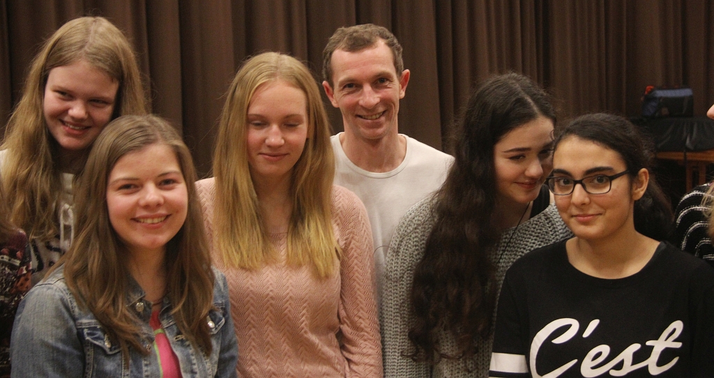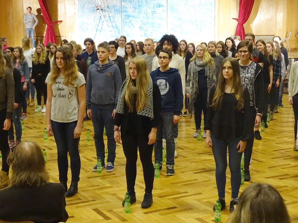 Dank einer Zusammenarbeit zwischen dem Sprachbüro des Institut français in Düsseldorf und dem Ministerium für Schule und Weiterbildung des Landes Nordrhein-Westfalen wurde am Montag, den 30. November 2015, zwischen 16.30 Uhr und 18.00 Uhr im Annette-von-Droste-Hülshoff Gymnasium in Düsseldorf-Benrath die Performance « Kunst, Kultur, Schule – Gemeinsam für das Klima » aufgeführt.